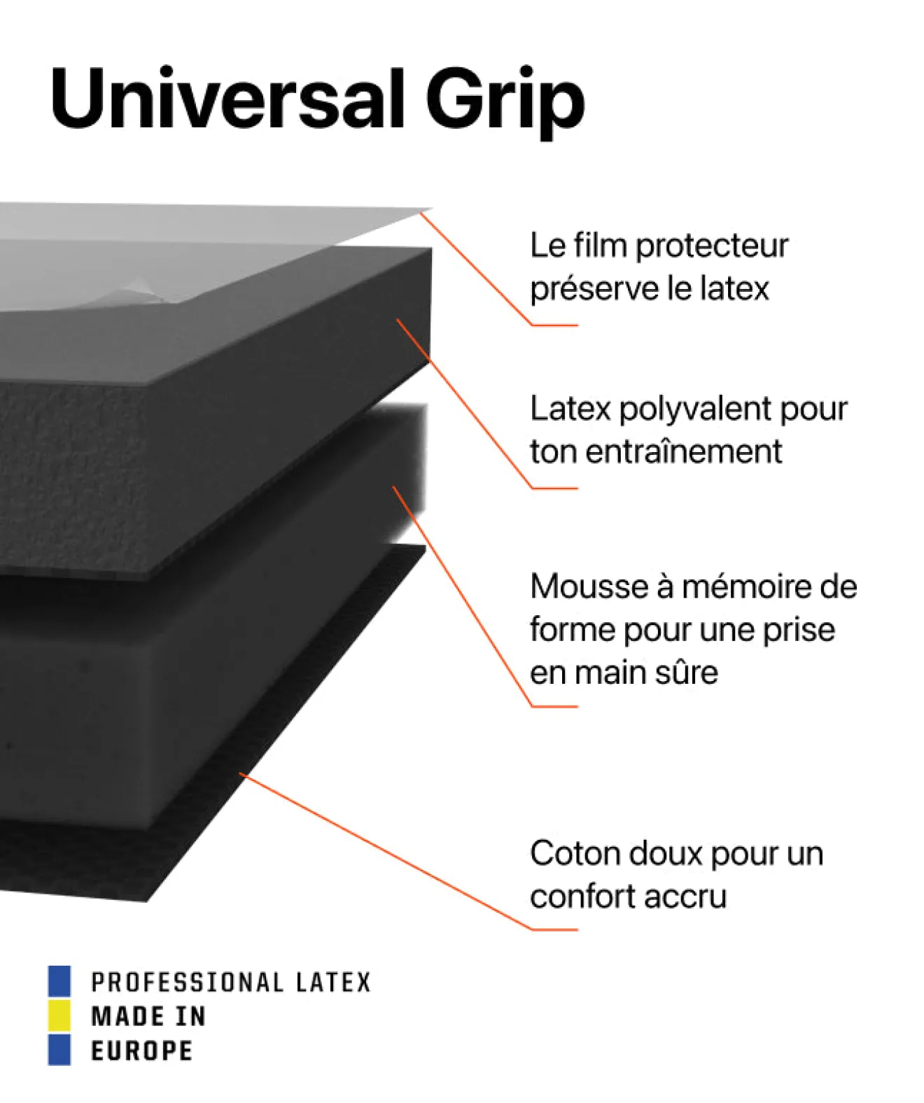 Une forte adhérence dans toutes les situations : le puissant Universal Grip de 3 mm + 5 mm vous offre une forte adhérence et un contrôle supérieur du ballon. - PRISE DE BALLE SÉCURISÉE