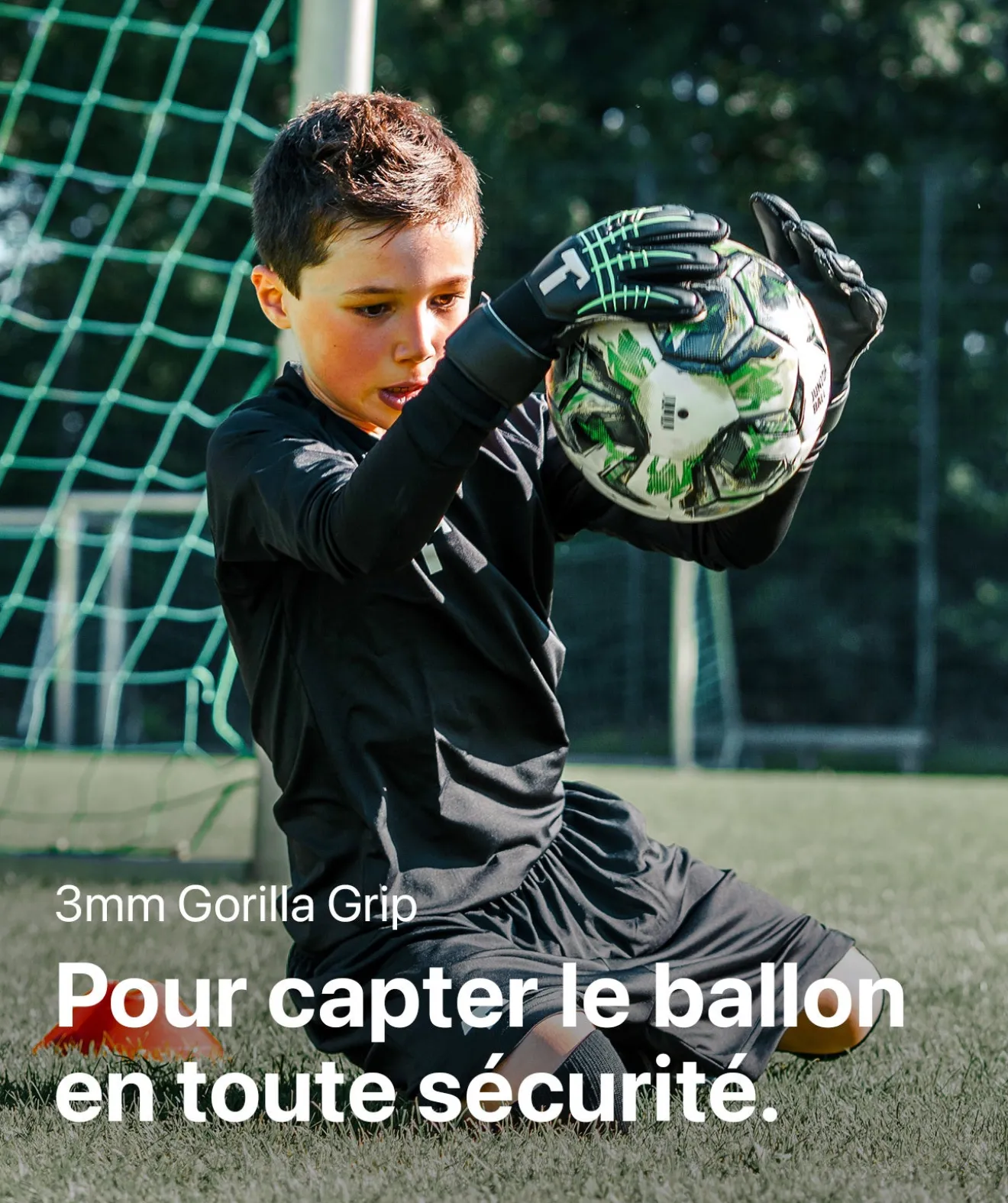 Un ajustement parfait, une adhérence convaincante et une longue durée de vie. Nos gants de gardien de but pour enfants sont bourrés de superbes caractéristiques. - Grip Gorilla durable.