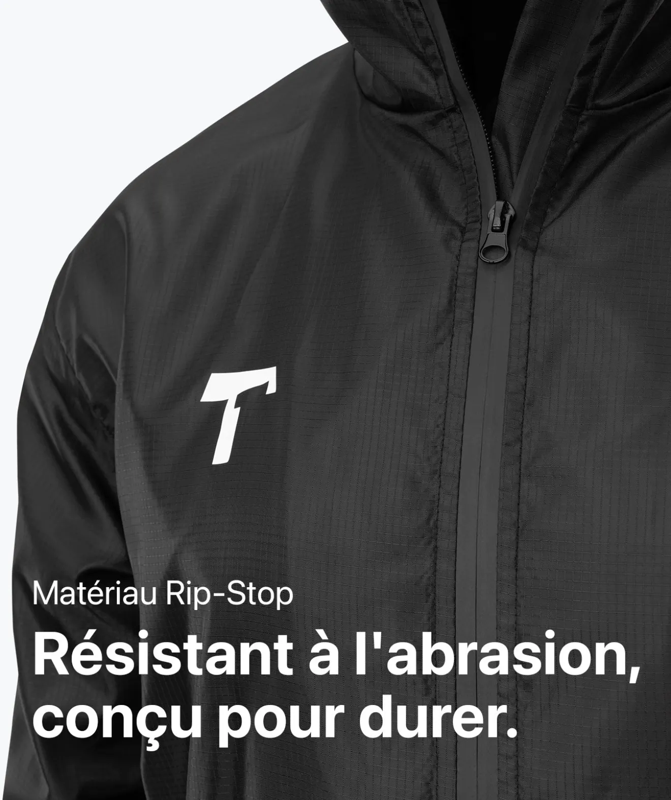 Ne montre aucune faiblesse : les fermetures éclair étanches, les coutures soudées, les poignets flex serrés, le cordon élastique à l’ourlet final et un col haut avec capuche intégrée aux couleurs T1TAN te protègent en équipe contre le vent et les intempéries. - Mettre tout le monde dans sa poche.