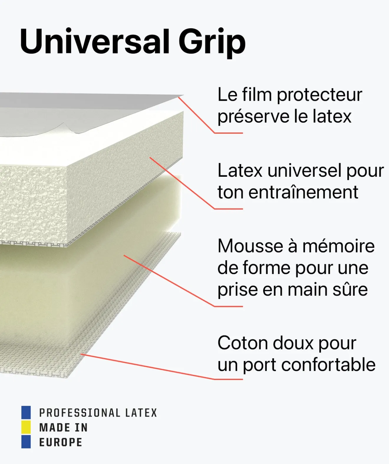 Une forte adhérence dans toutes les situations : le puissant Universal Grip de 3 mm + 5 mm vous offre une forte adhérence et un contrôle supérieur du ballon. - PRISE DE BALLE SÉCURISÉE