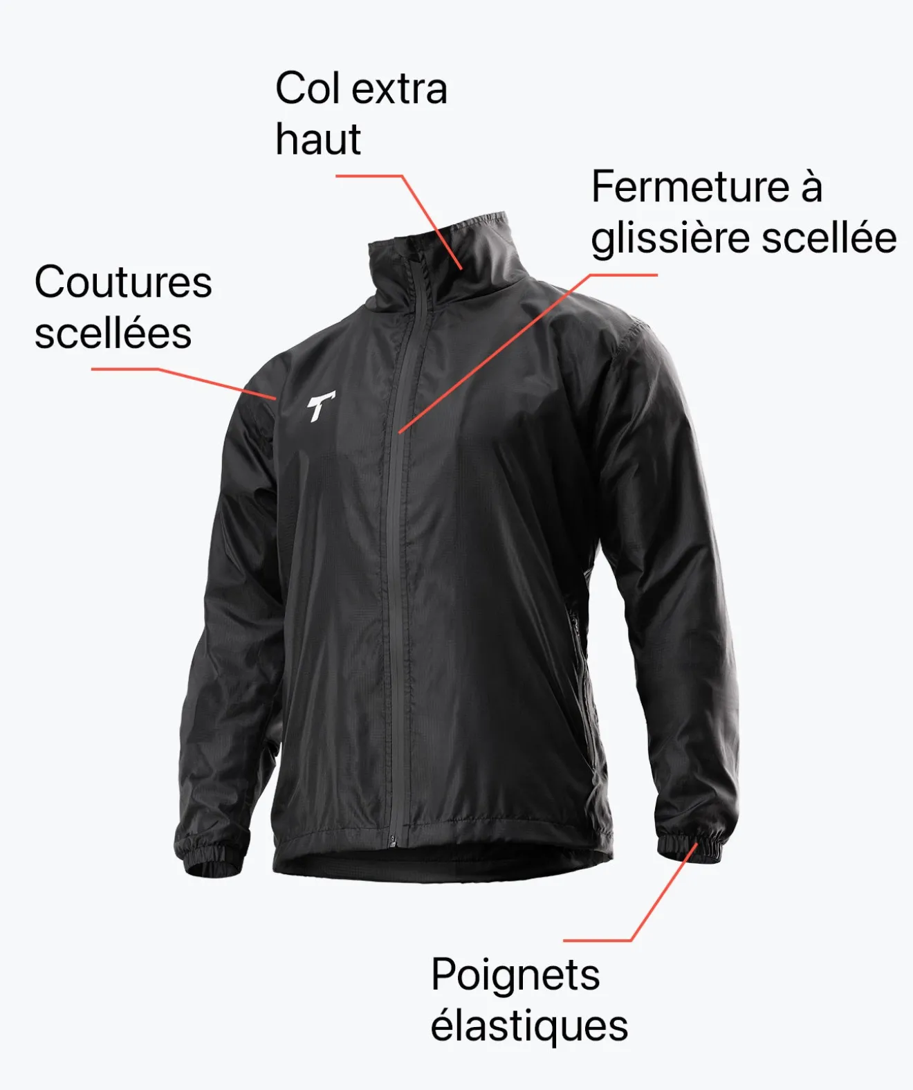 Ne montre aucune faiblesse : les fermetures éclair étanches, les coutures soudées, les poignets flex serrés, le cordon élastique à l’ourlet final et un col haut avec capuche intégrée aux couleurs T1TAN te protègent en équipe contre le vent et les intempéries. - Mettre tout le monde dans sa poche.